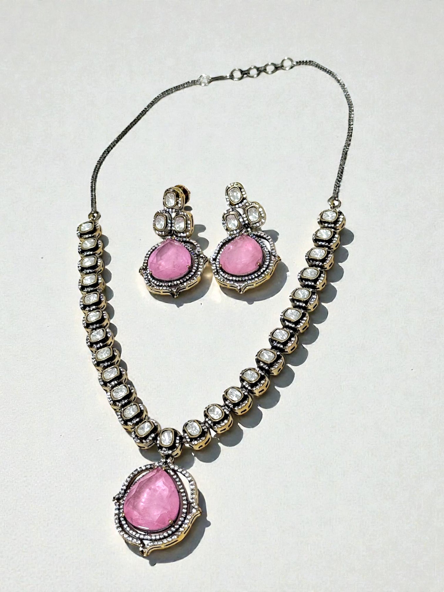 This set is perfect for dressing up any look. It radiates elegance with the beautiful Kundan stones. It can be worn to formal events. ✨