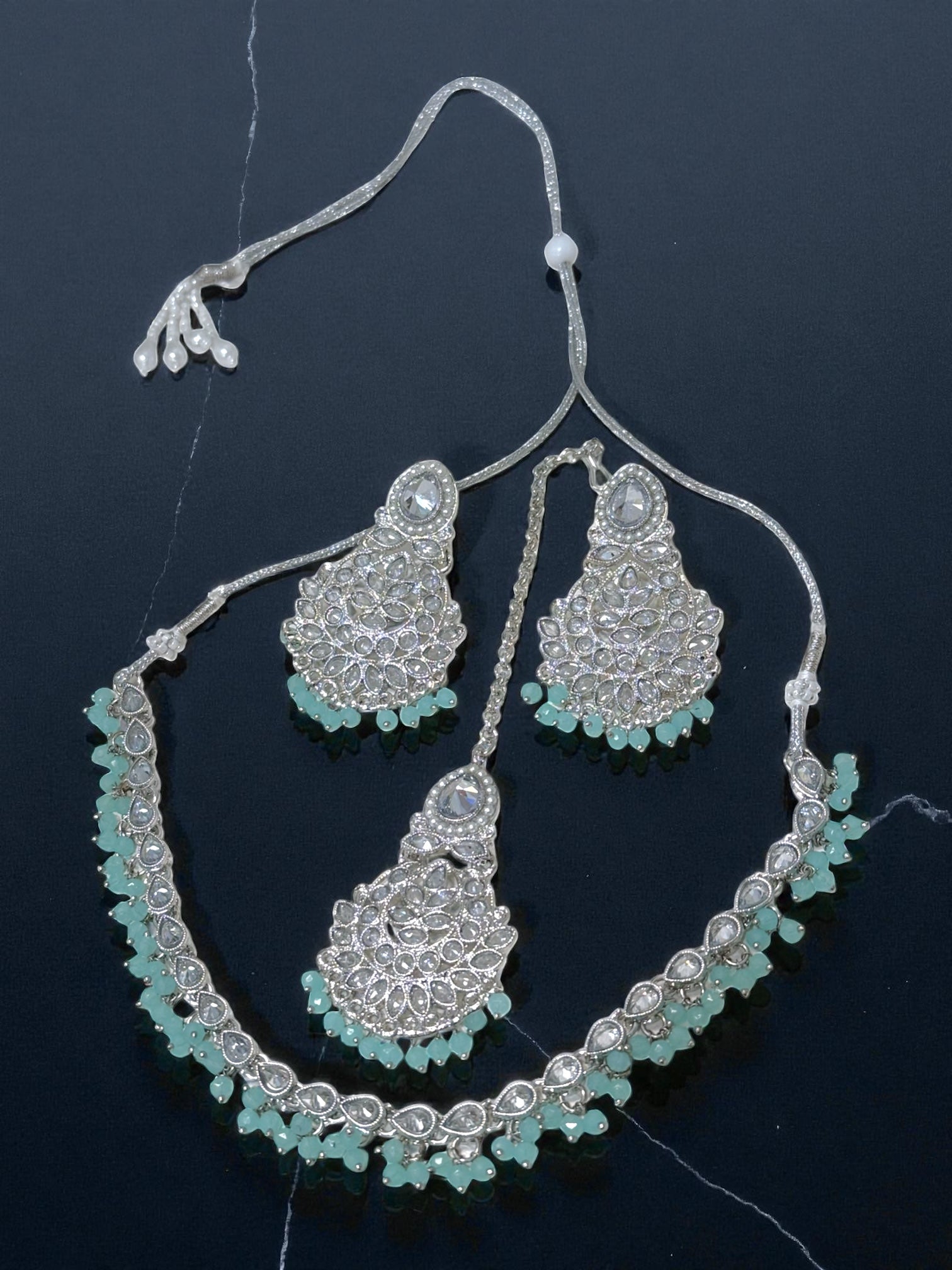 The Hira Dainty Set is perfect for everyday wear. It radiates elegance with the beautiful reverse Polki stones. It can be worn on semi-formal or formal events. ✨