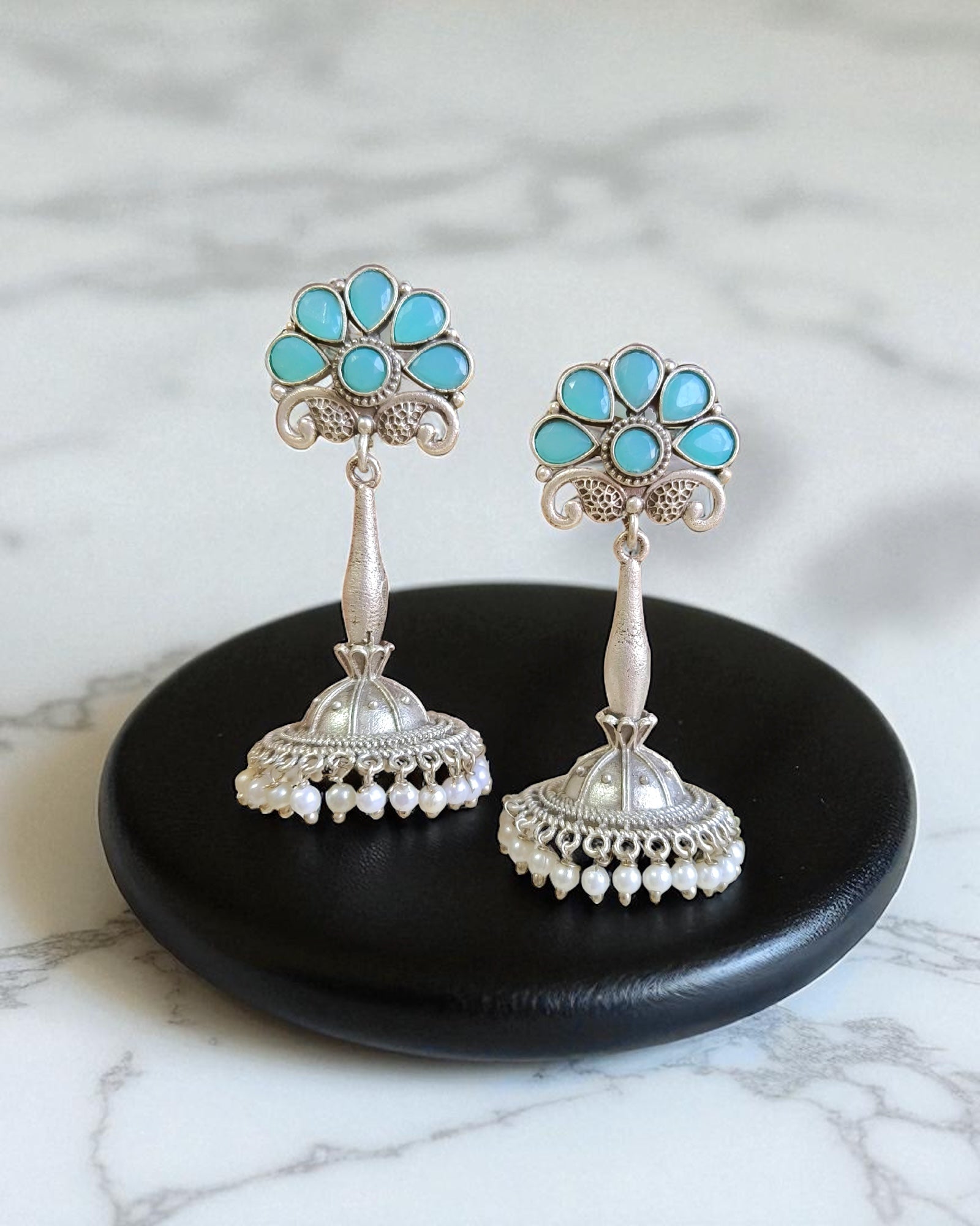 Rhea रिया Silver Plated Jhumka in Sky Blue