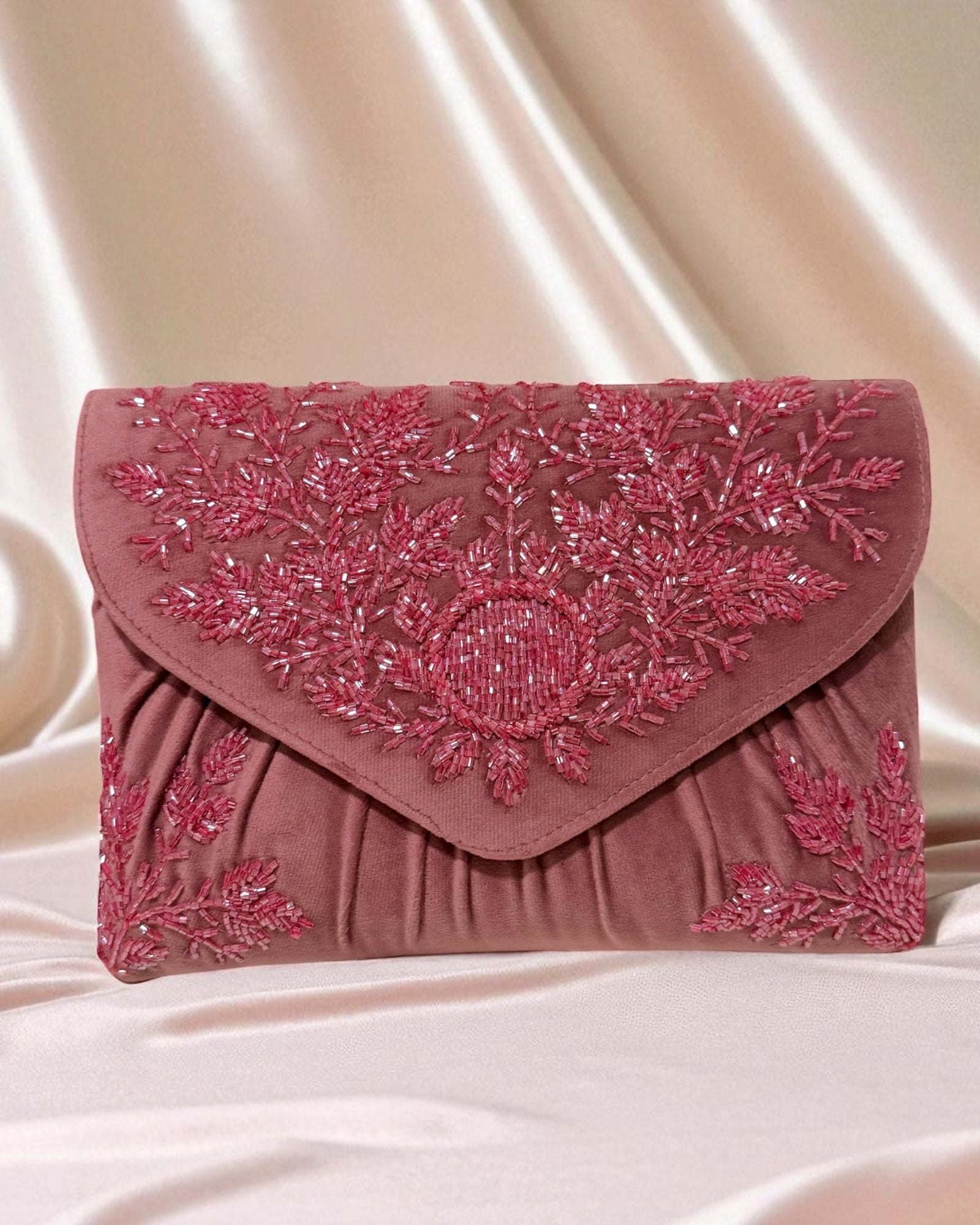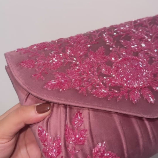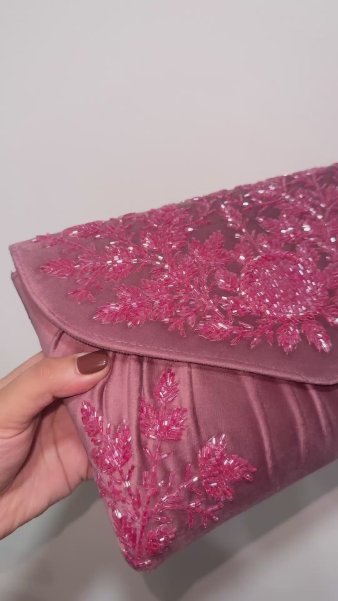 Jawhara جوهرة Beaded Velvet Bag in Dark Mauve and Magenta