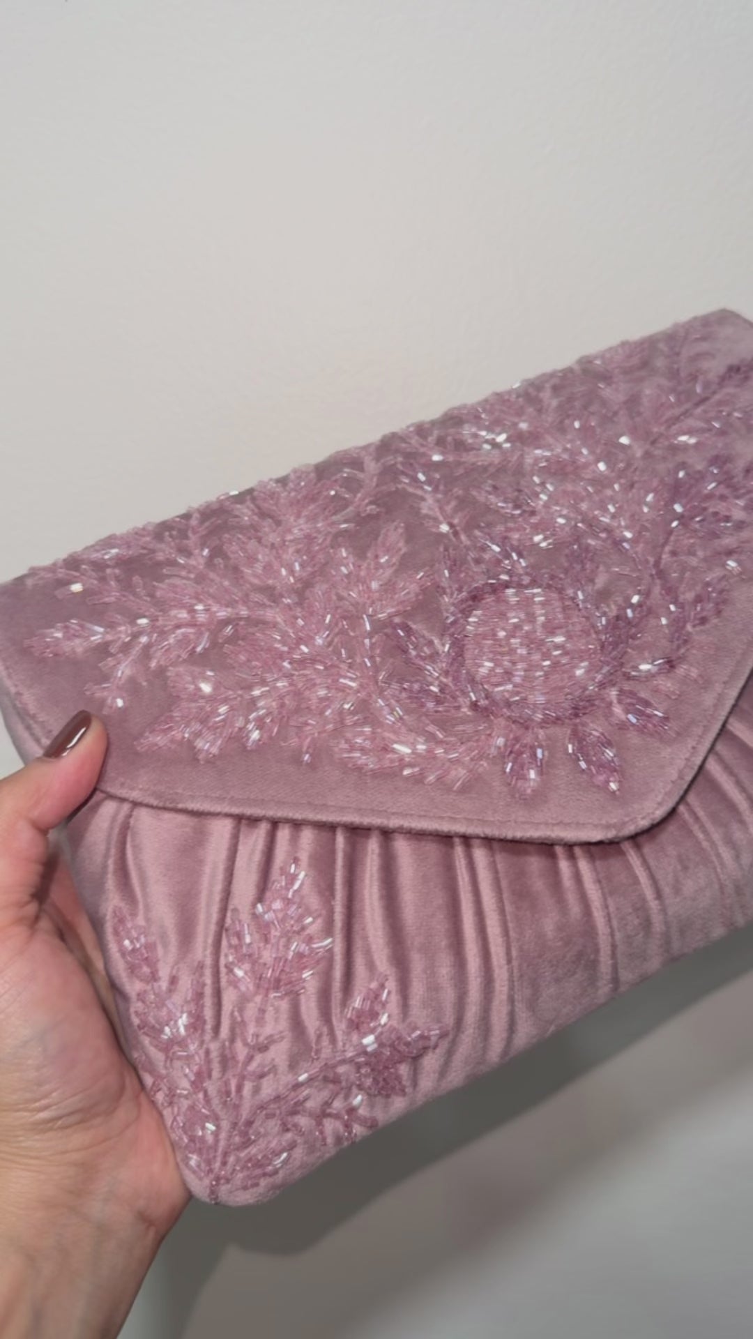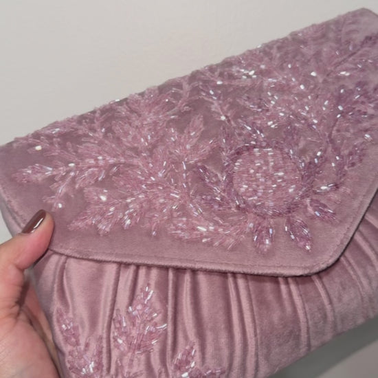 Jawhara جوهرة Beaded Velvet Bag in Lilac