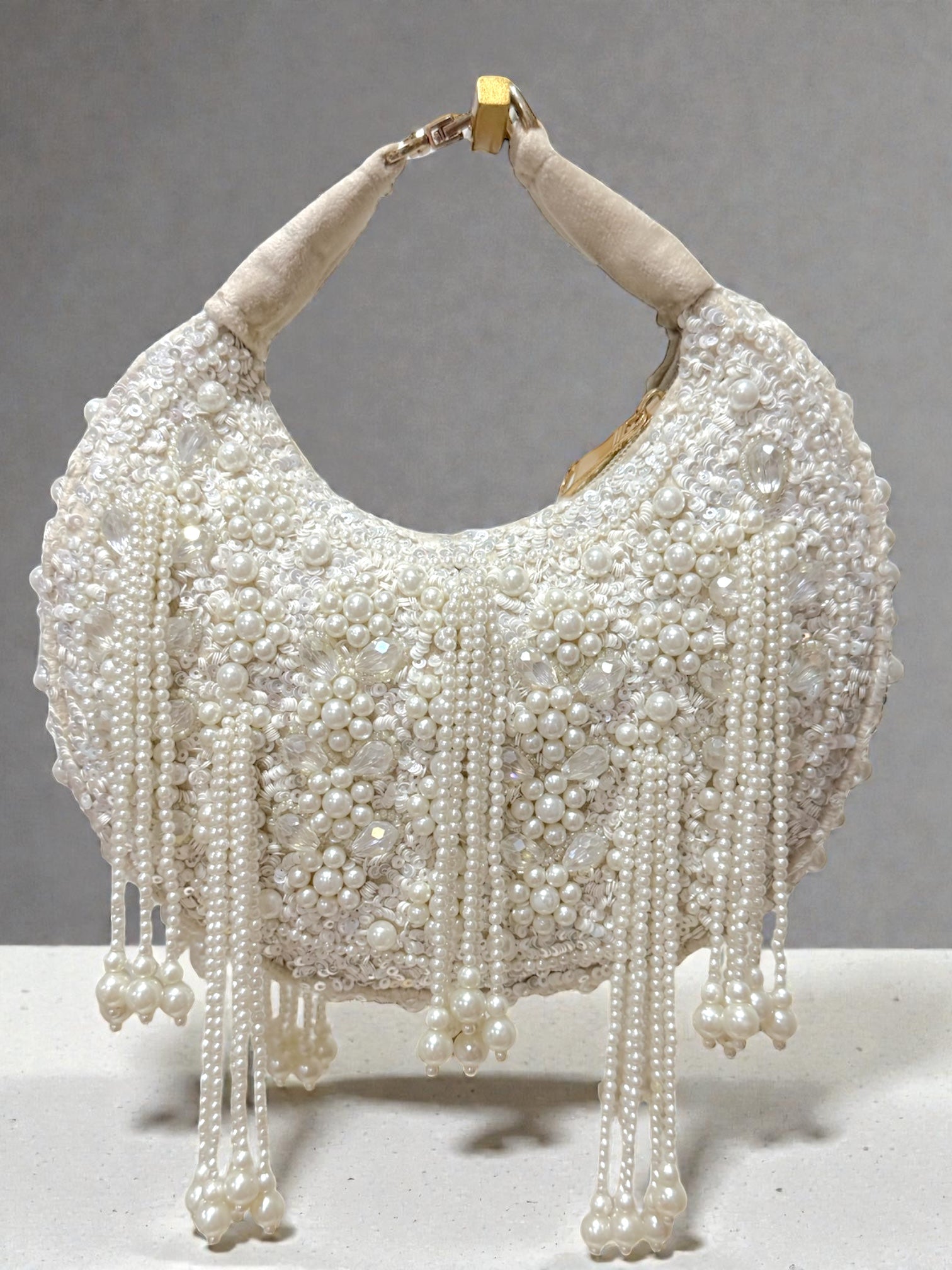 Jaya जया Moon Shaped Beaded Bag in White