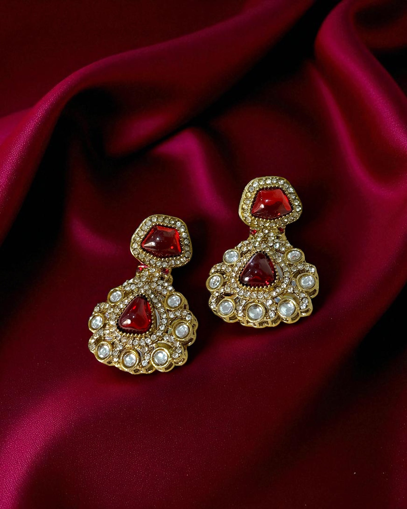 Radiant, bold, and undeniably elegant, the Kiara earrings are designed for the modern woman who cherishes heritage. Featuring an exquisite teardrop silhouette, these earrings are encrusted with high-polish uncut Kundan stones, framed by delicate micro-crystals and surrounded by a border of circular mirror-like gems.✨