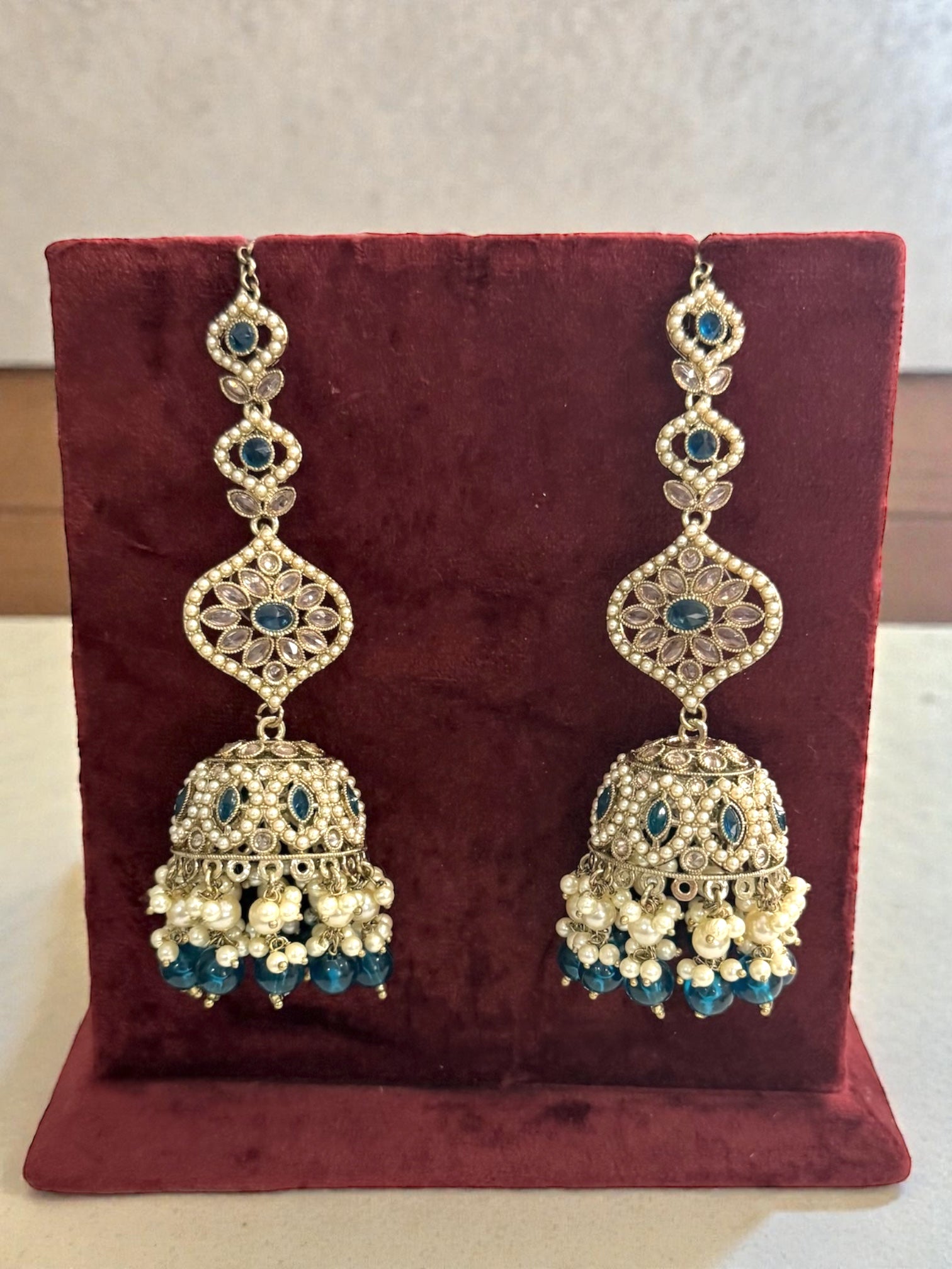 Lida ليدا Polki Jhumkay with Saharay in Blue