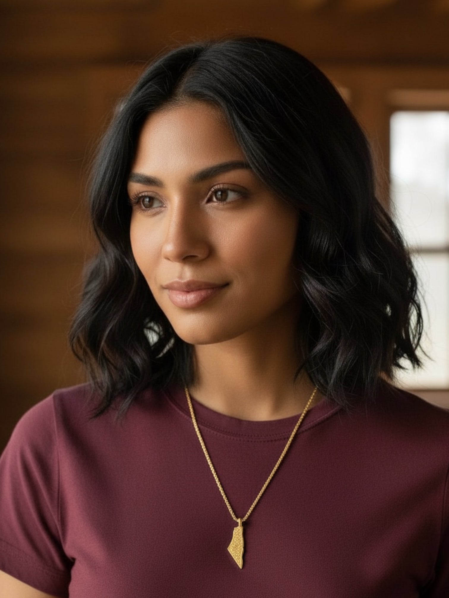 Palestine Map Necklace with “Palestine” in Arabic Calligraphy in Gold - Stainless Steel - Palestine Collection
