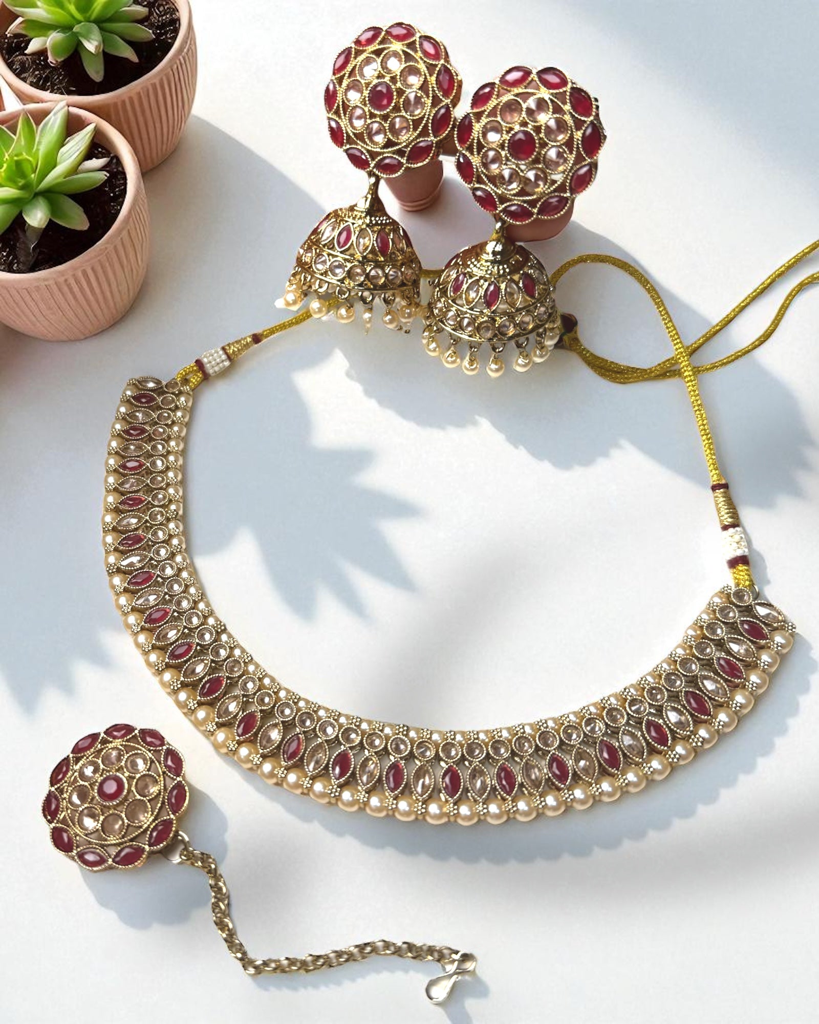 Sanika सानिका Polki Set in Ruby