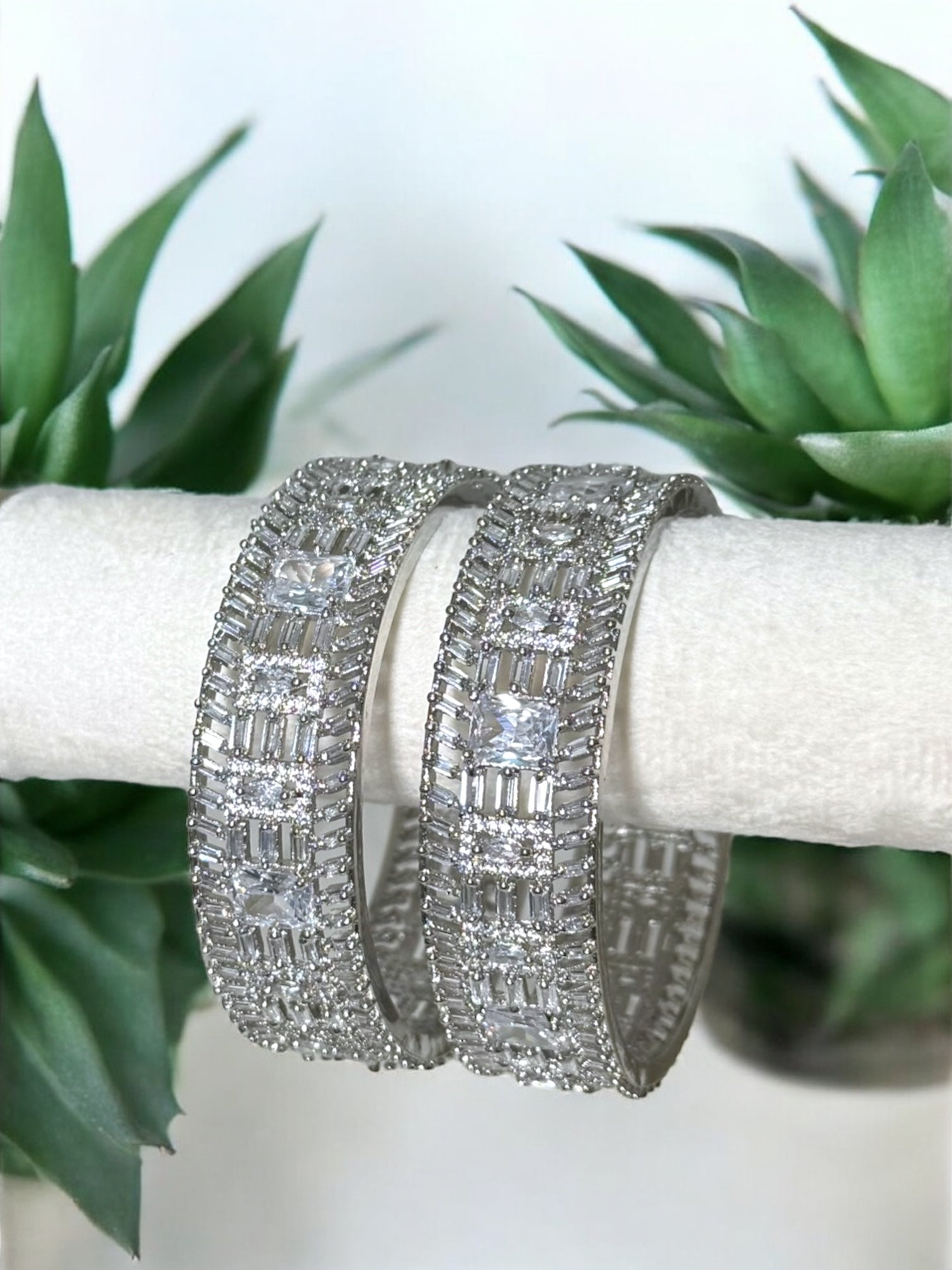 This pair of karay features a silver base adorned with dazzling silver diamond stones that catch the light with every movement. Elegant yet timeless, these bangles are perfect for adding a luminous touch to any outfit—whether you’re dressing up for a wedding or adding a sparkle to your everyday style.✨