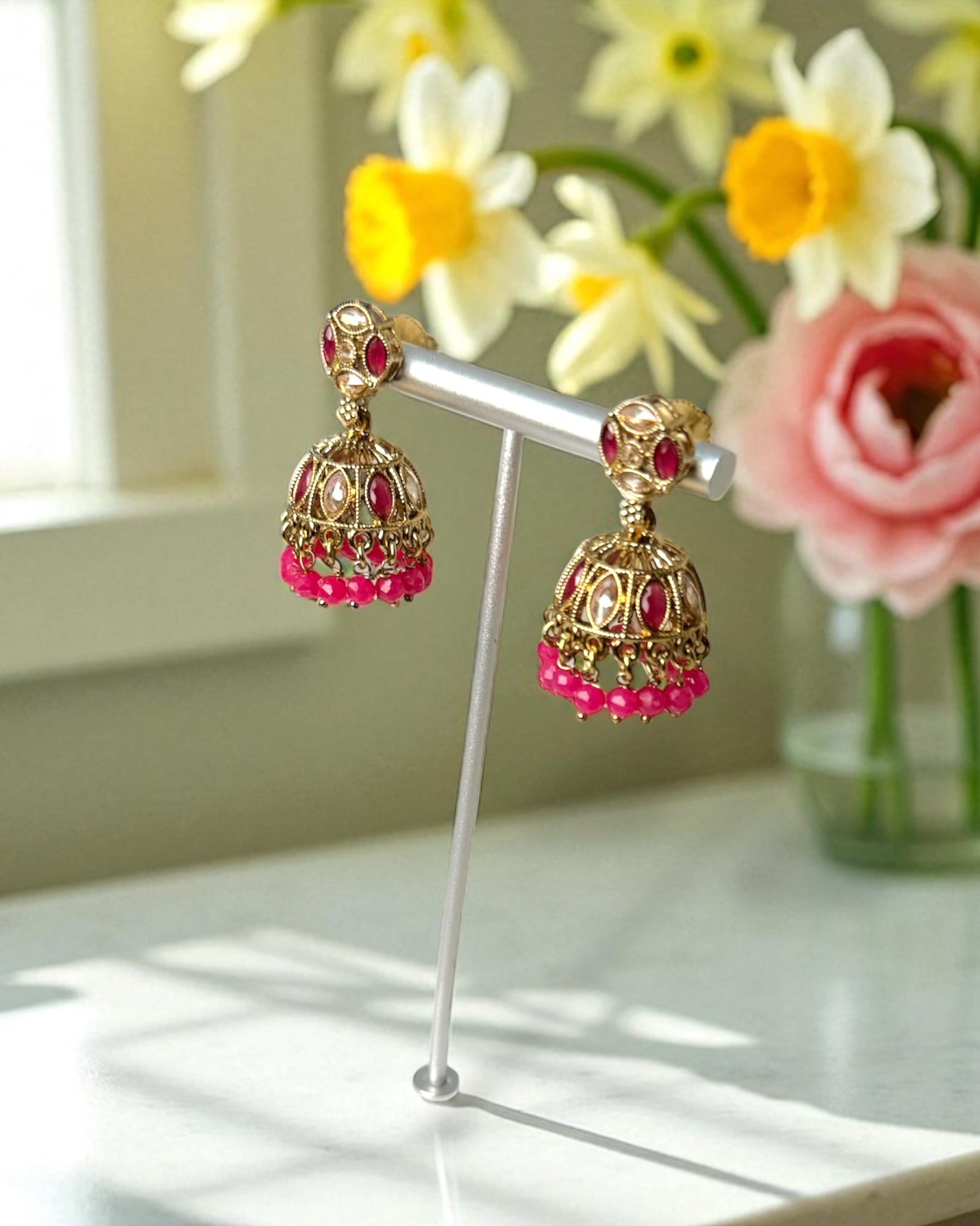 Simran सिमरन Mini Polki Jhumkay in Hot Pink