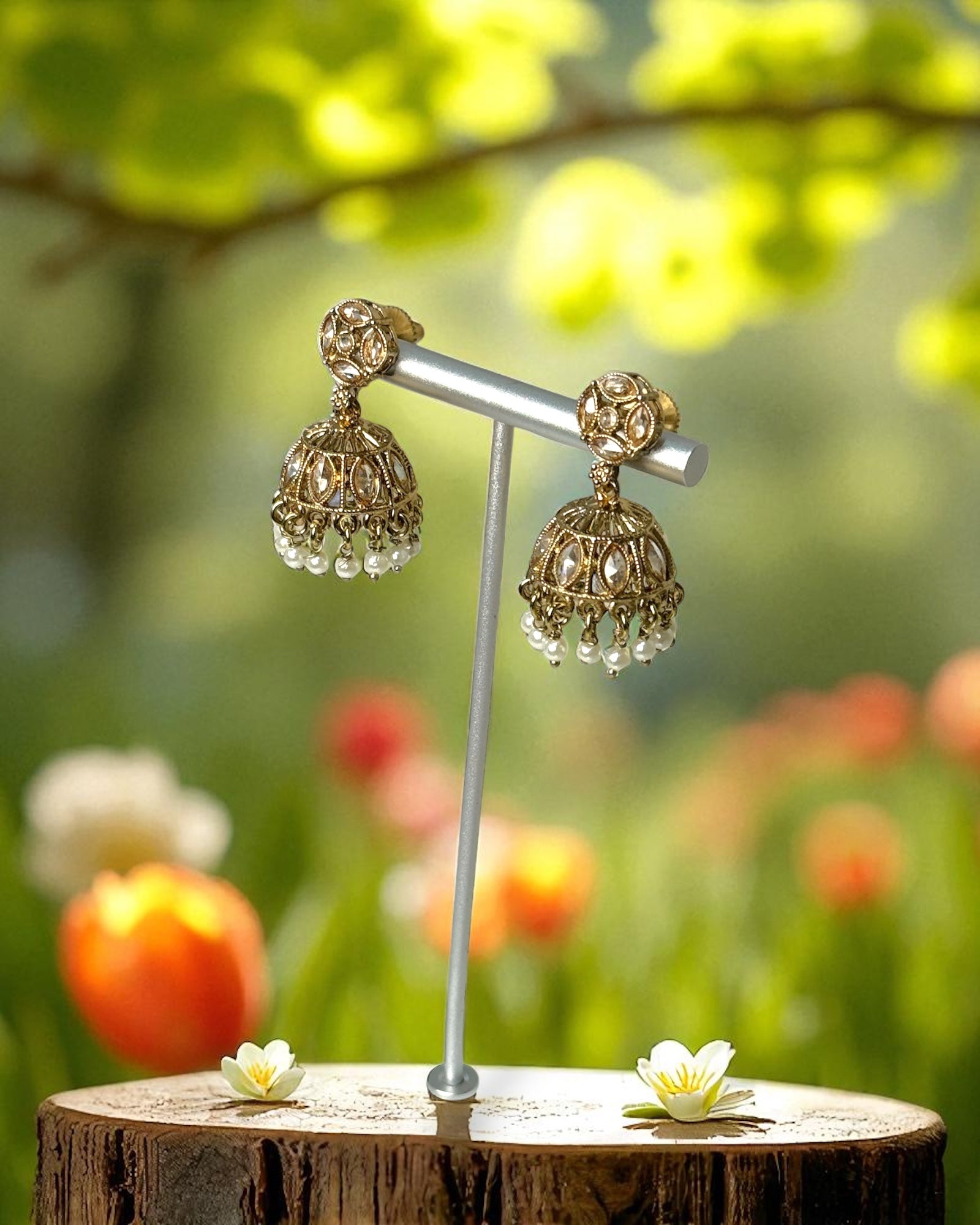 Simran सिमरन Mini Polki Jhumkay in Gold