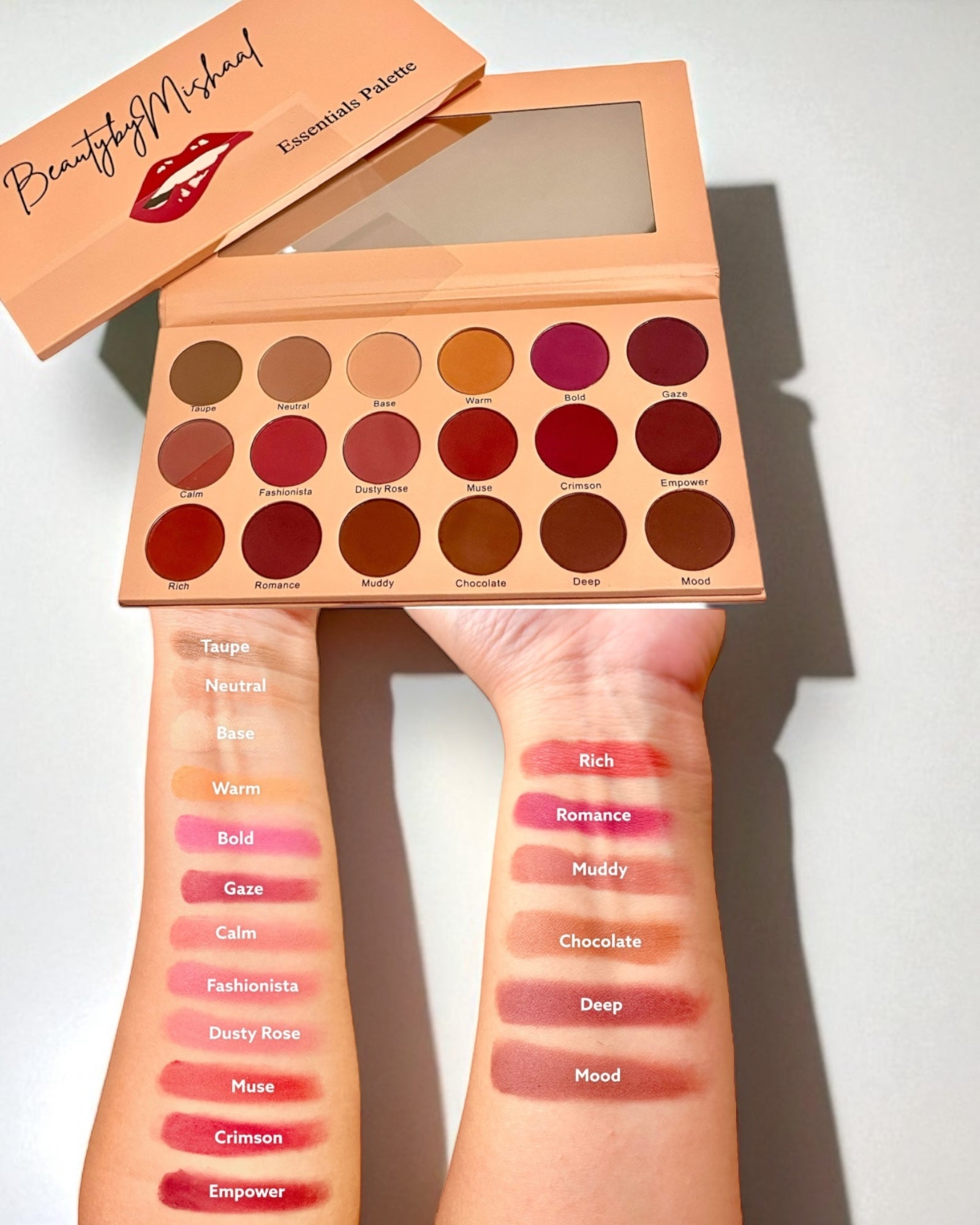 The perfect everyday palette — meet Essentials, a warm-toned collection of 18 richly pigmented mattes designed to flatter every skin tone. From earthy taupes and soft neutrals to bold berries and deep chocolates, each shade blends seamlessly for effortless glam or natural depth. Whether you’re going for a subtle daytime look or a bold, empowered gaze, this palette is your go-to for every mood and every moment.✨