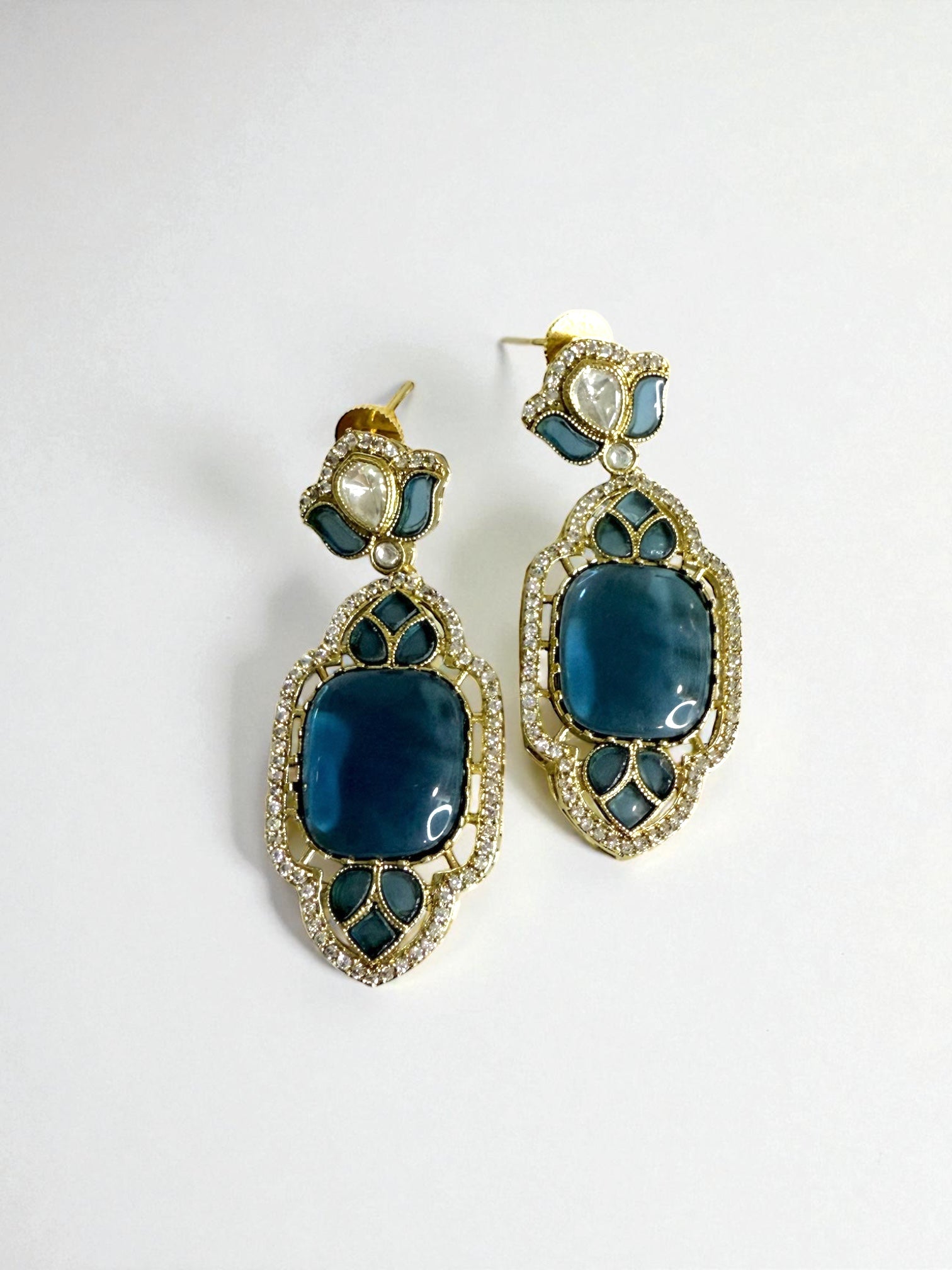 Zohra زهرة Gold Plated Kundan Earrings in Blue